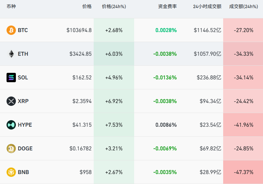 截至北京时间7:00左右,近24小时内,加密货币全线反弹,但成交额均大幅下跌20%—40%不等。其中比特币价格涨2.68%,以太坊、XRP涨超6%,SOL涨近5%。全市场超17.6万人被爆仓,爆仓金额3.74亿美元,其中多为空单爆仓。